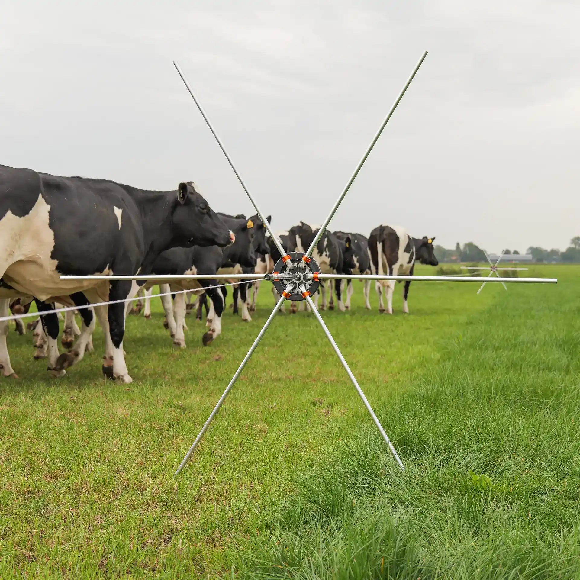 L’araignée de prairie Gallagher rend le pâturage tournant mobile plus rapide et plus simple que jamais. Ce « piquet » à six pieds roule tel une araignée sur la prairie et fait également office de support pour le fil électrique, placé à une hauteur de 0,78 mètre.