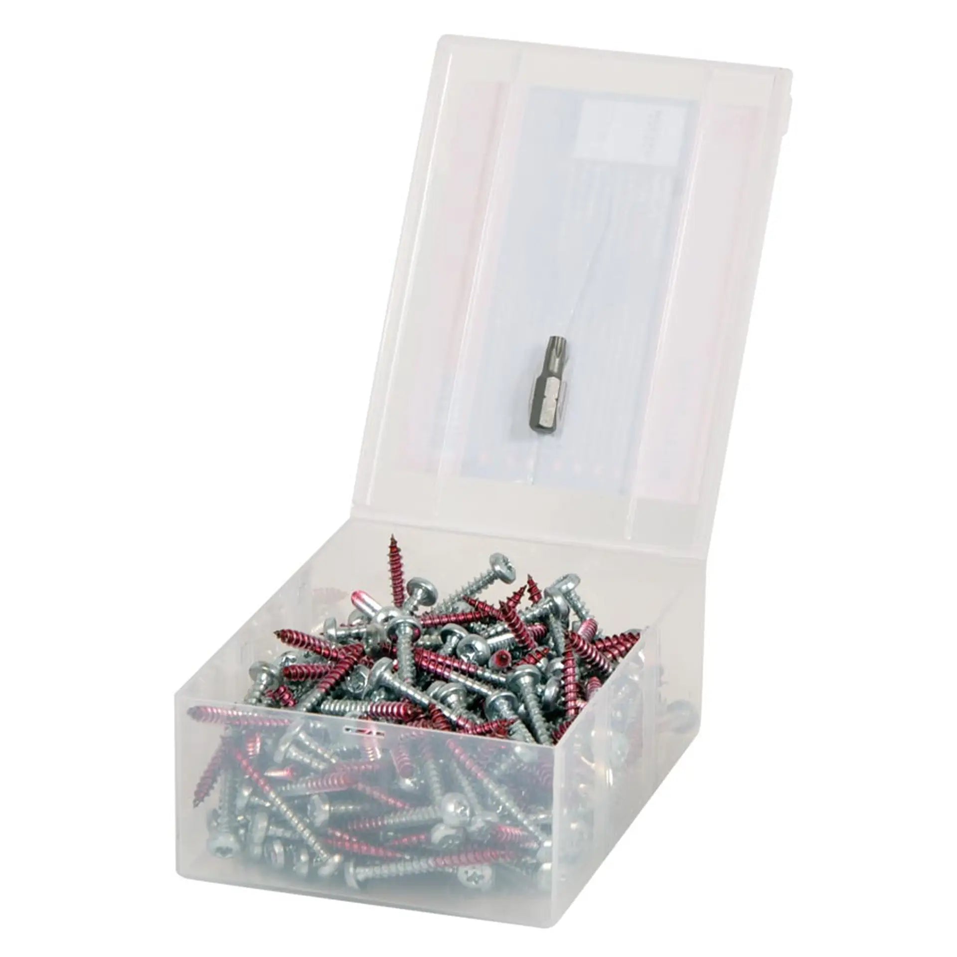 Vis 4.5x40 Torx autotaraudeuses avec tête cylindrique. La cire ne demande pas de pré- perçage. Comprend T25 l’embout de tournevis.