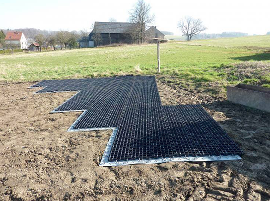 pose avec un géotextile possible lorsqu'on les pose à l'envers pour une remplissage avec du sable dans ce cas une sous couche de stabilisation est recommander.
