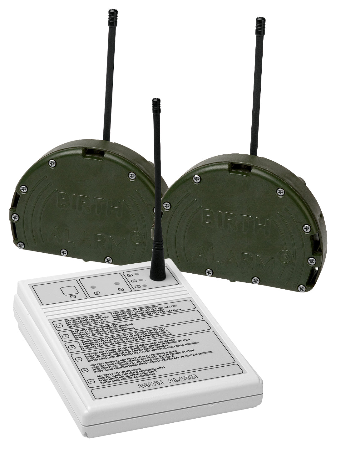 Le Birth Alarm Classic se compose d’un émetteur et d’un récepteur fixe. Ce récepteur fixe est d’une fiabilité supérieure car vous ne dépendez pas du niveau de charge de votre téléphone mobile, par exemple. Cette ceinture de poulinage a une portée de 500 mètres et peut être éventuellement combiné à un transmetteur GSM analogique.