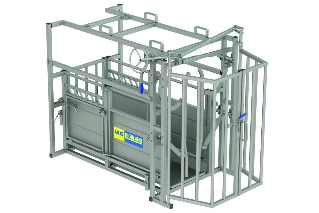 La cage Highland est conçue pour être spécialement adaptée aux bovins à cornes, mais elle convient également aux races de bovins sans cornes. Dotés d'un joug de type ciseaux à commande manuelle, les bras du joug se rétractent entièrement sur les côtés de la cage pour maximiser la visibilité des animaux et un système d'enroulement simple permet de régler la largeur du joug entre 100 mm et 280 mm