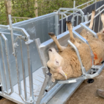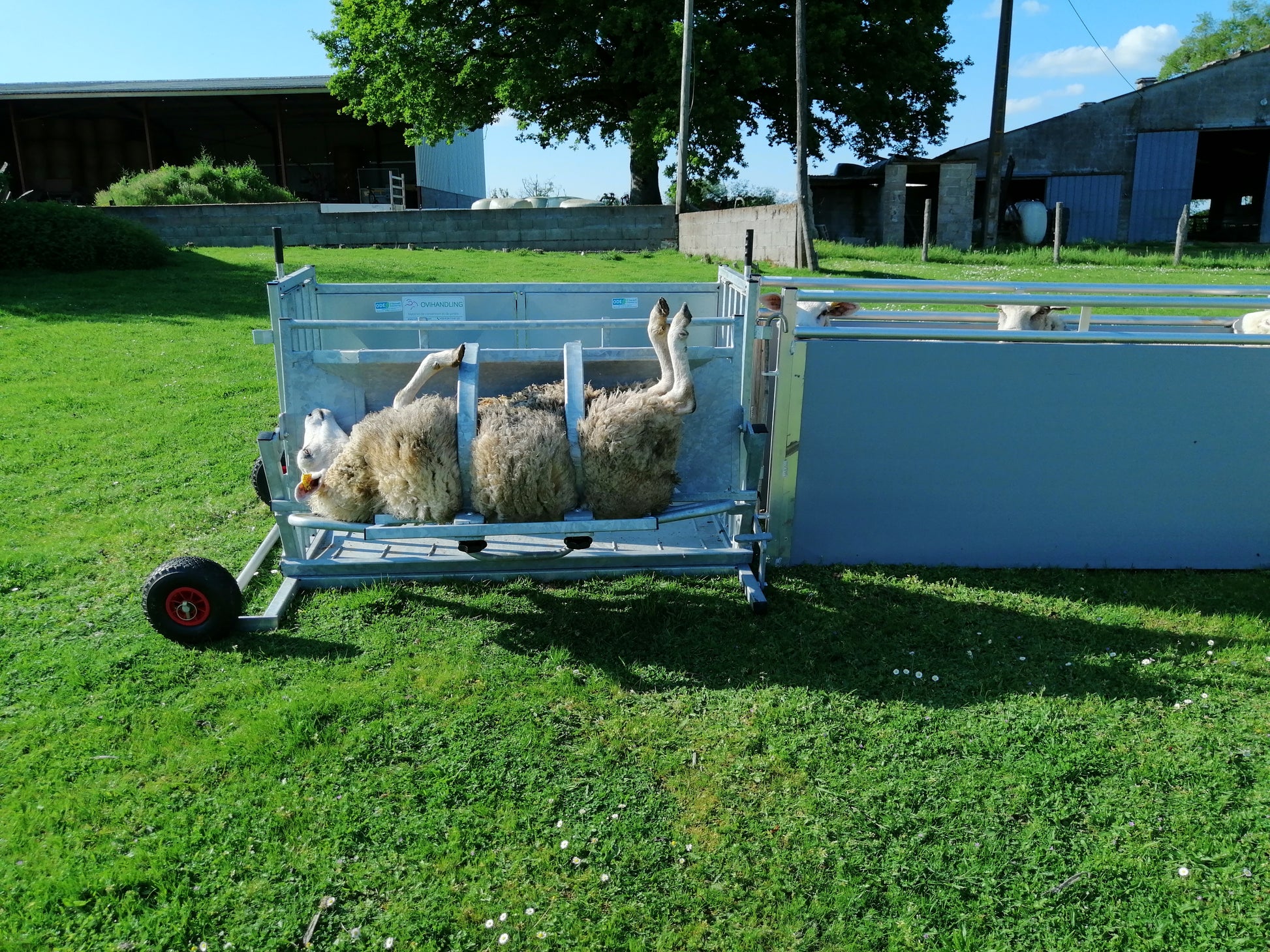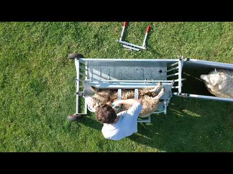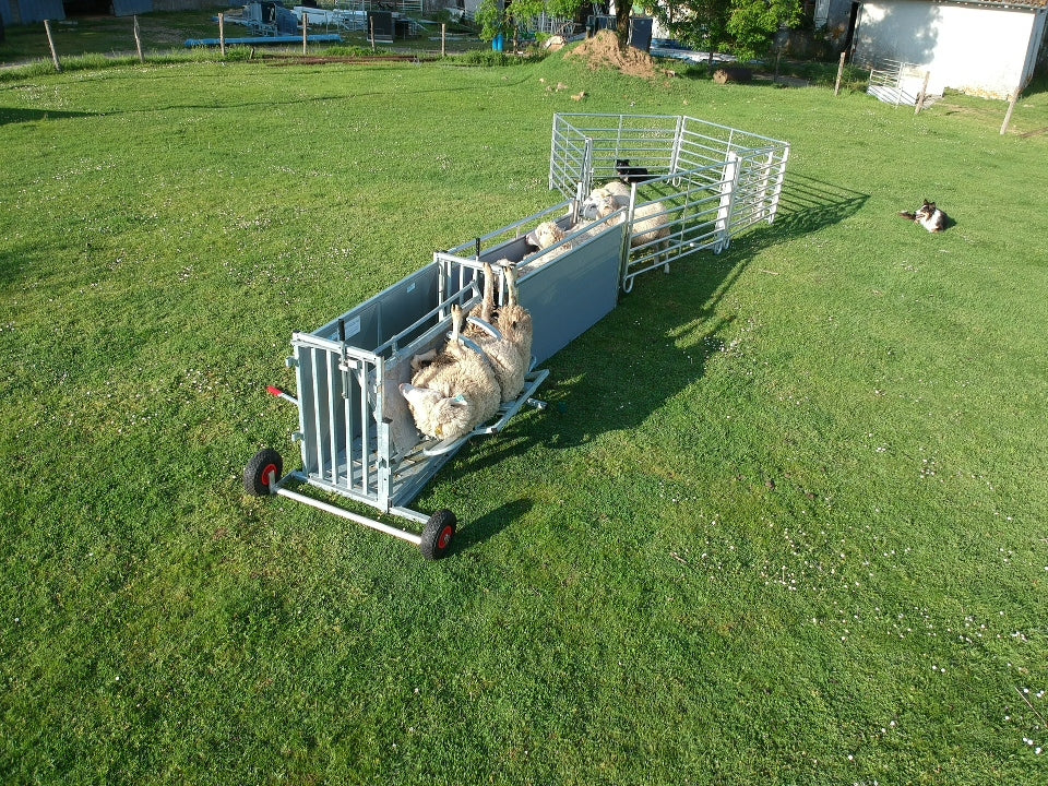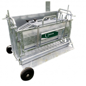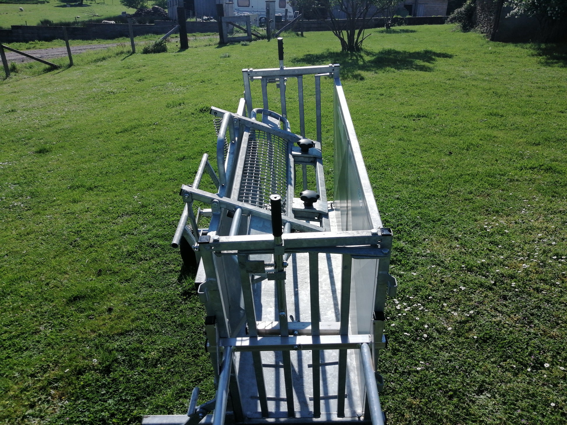 Cage de retournement latérale, sortant du couloir. Adapté au brebis de races de moyenne et grande taille. Retournement facile avec kit de roue comprise.