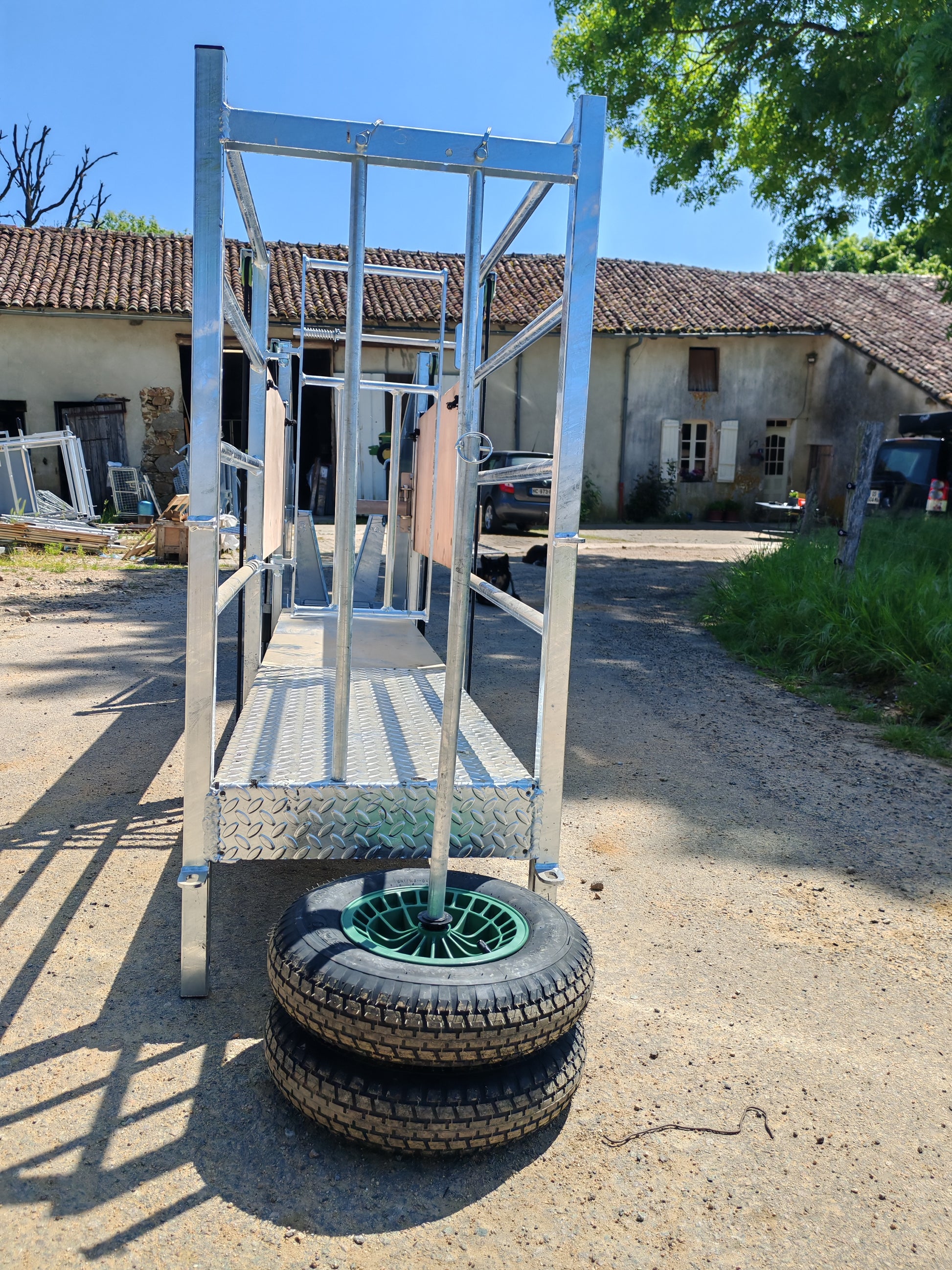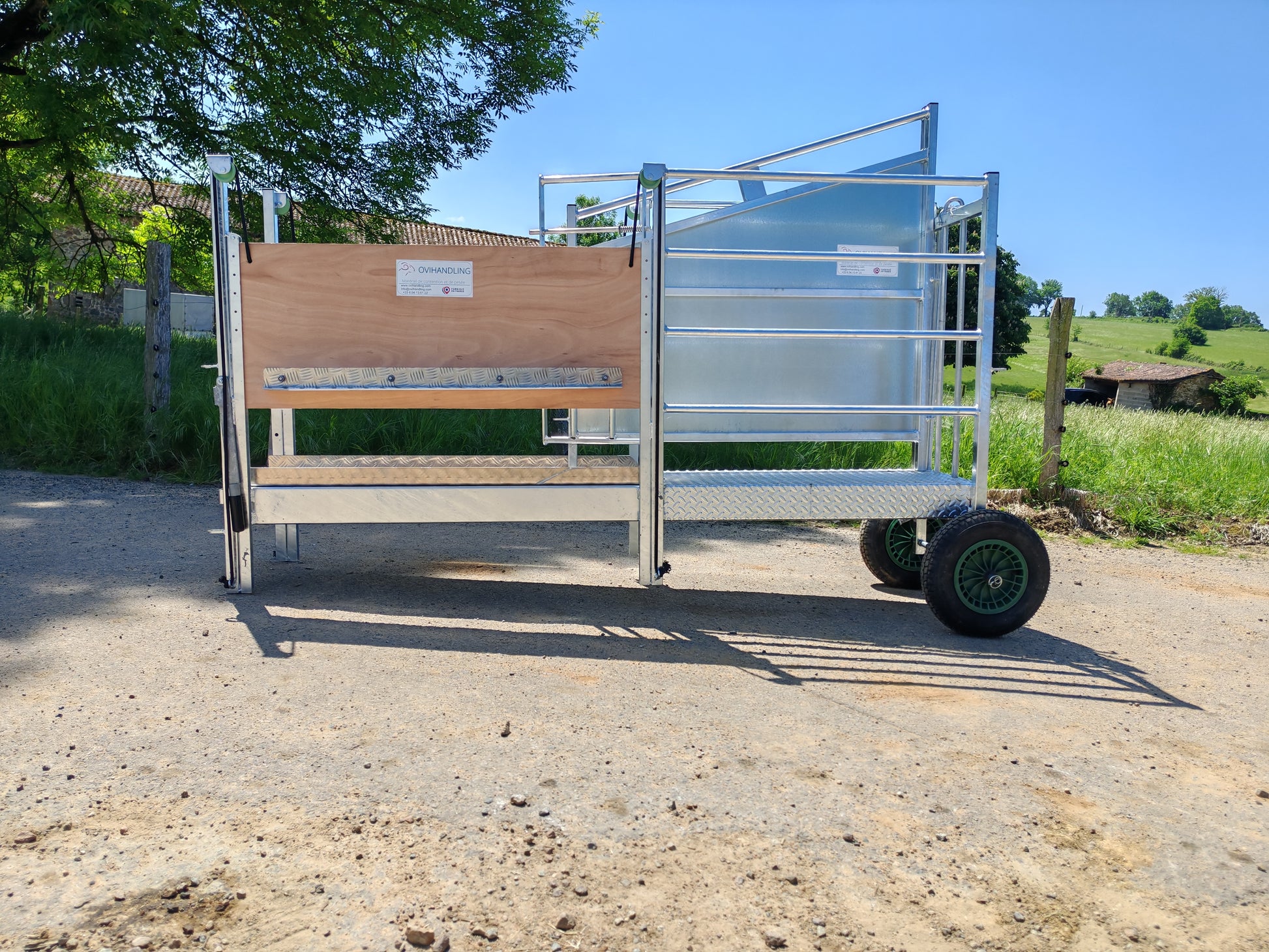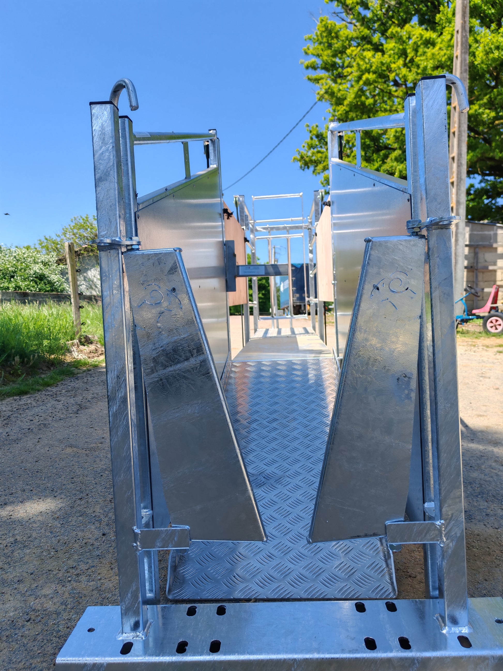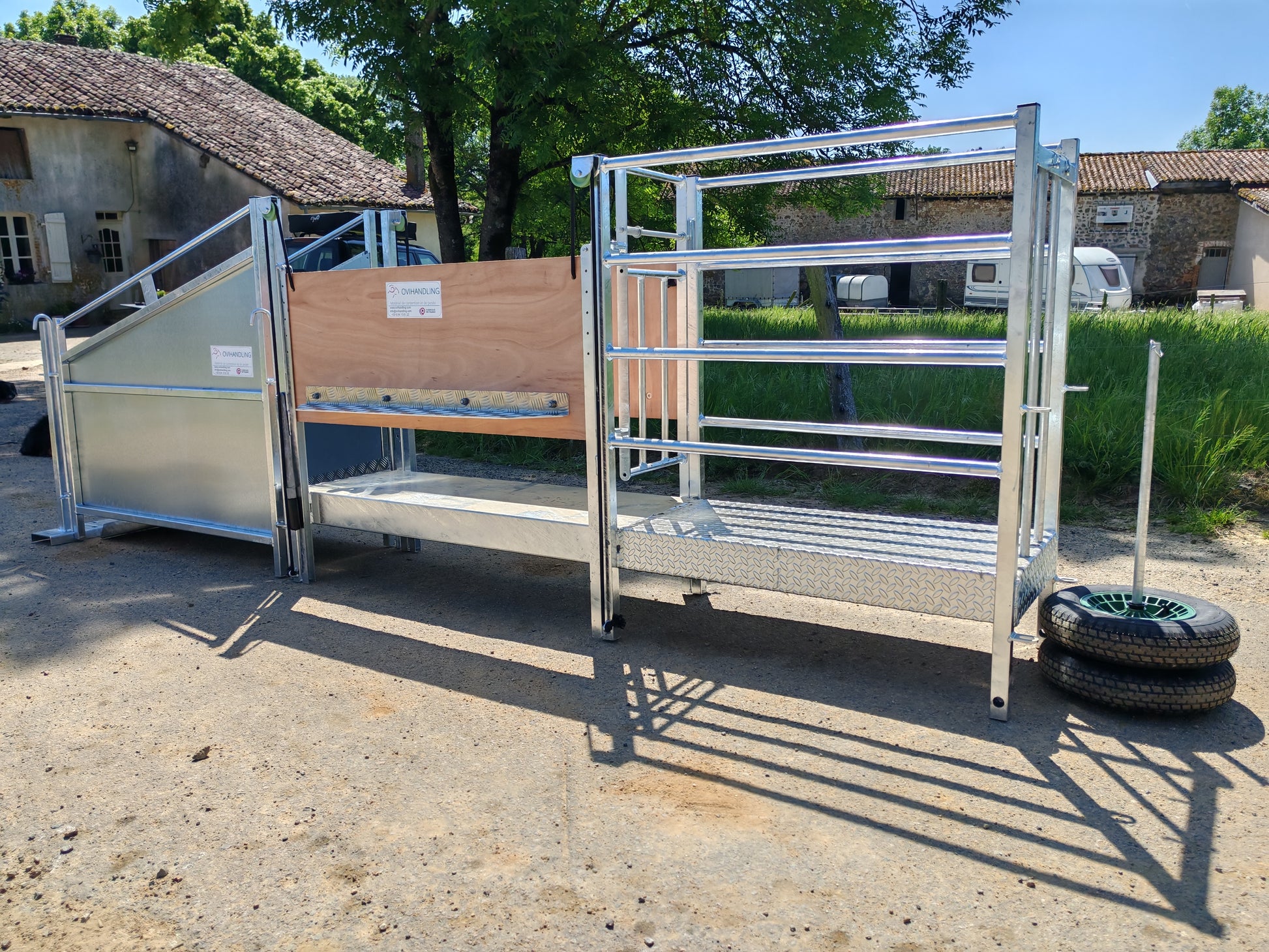 Le couloir est equipé d'une cage d'attirance équiper d'un cornadis pour placer 1 brebis enfin de facilité la monté des animaux, un pont pour monter dans le couloir ainsi que des claies en biais, pour mieux accopmagner les brebis sur le côté.